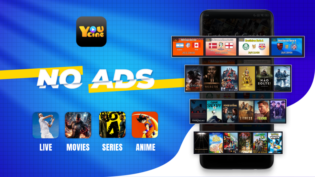 We offer many free channels, such as the Sports live matches, kids, and the Disney+, as well as different series of movies, TV shows and anime. Whatever your interests, you’ll find content that suits your needs on youcine apk.