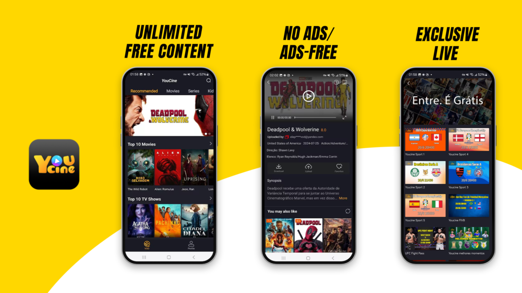 Additionally, YouCine stands out by offering several free channels to users, including sports channels, children’s channels, Disney, and variety shows, all without ad interruptions and adult content. Compatible with all Android devices, YouCine ensures a high-quality and secure viewing experience, thanks to SSL technology that protects user data.